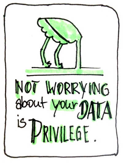 So führte uns Laura denn auch erstmal vor Augen, wieviele Tracker uns verfolgen, wenn wir im Web unterwegs sind, und an welche Firmen diese Tracker ihre gesammelten Informationen weitergeben. Und wieviel Facebook über seine Nutzer weiß - und auch über Leute, die sich nie bei Facebook angemeldet haben. Und wer sonst noch alles Interesse an diesen Daten hat. Und wie sie genutzt werden, nicht nur um das Maximum an Umsatz für die Kunden dieser Geschäftsmodelle zu generieren, sondern auch um Menschen zu manipulieren. Und dass die wertvolleren Daten nicht die Inhalte, sondern die Metadaten sind (also z.B. wer + wann + mit wem + wie oft + wie lang kommuniziert). Selbst, wenn man einiges davon bereits wusste oder zumindest ahnte: so langsam fühlten wir uns im Publikum deutlich unwohl...