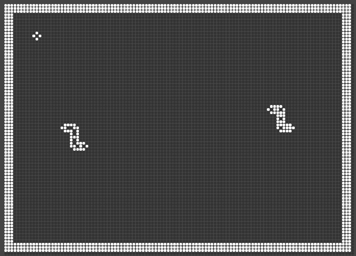 Die Programmierung des Feldes steht soweit, die Schlangen jedoch bewegen sich bisher nur in eine Richtung. An der Steuerung und Kollision sind sie aber dran. Die Mitarbeitenden bei neuland sind schon jetzt auf das Spiel gespannt und können es kaum erwarten, Snake auf dem Flip-Dot zu spielen.
