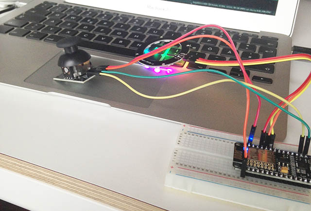 So hat die ungefähr 10-köpfige Gruppe sogar ihren Samstag geopfert, um in Gesellschaft der Anderen in die Welt der Internetmaschinen einzutauchen. Nach einer kleinen Einführung durch Stefan und Michael wissen die Teilnehmenden, wie so ein Chip überhaupt funktioniert und wie man ihn programmieren kann. Darüber hinaus stellen die beiden verschiedene so genannte Sensoren und Aktoren, wie Temperaturmesser, Lautsprecher oder Joysticks vor, die der Gruppe zum Herumspielen zur Verfügung stehen. Die meisten werden am Ende des Tages viel Spaß mit den steuerbaren, farbwechselnden Lampen gehabt haben, wie auch André, der normalerweise bei uns im Frontend zu Hause ist und sich mit visuellen Effekten auskennt. „Es war schon spannend, eine eigene kleine Philips Hue zu bauen“, sagt er später.