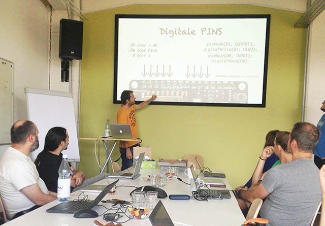 „Privat beschäftige ich mich auch mit dem Programmieren von Hardware und habe auch meine Kinder schon dazu animieren können“, sagt Michael. „Wir wollen mit dem Workshop durch ein ‚grüne Wiese‘-Prinzip die Grundlagen vermitteln“, stößt Stefan ins selbe Horn und betont gleichermaßen die Prämisse des Workshops: „Einfach mal machen, so schwer ist es gar nicht“.