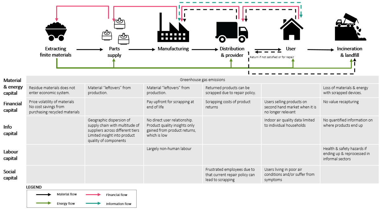 Wir gehen ja davon aus, dass Unternehmen durch die Produktion von Gütern Wert schaffen. Was aber passiert mit diesem Wert nach dem Verkauf? In einem linearen Wirtschaftsmodell geht er dem Unternehmen verloren, und zwar komplett. Enthaltene Rohstoffe? Verloren. Das Produkt, das nach der ersten Nutzung häufig noch gut genug ist, um weiter genutzt zu werden? Davon profitieren Dritte, z.B. Second Hand-Marktplätze. Während der Produktion anfallender "Müll"? Davon profitiert gar keiner, weder das Unternehmen selbst, noch Dritte, noch die Umwelt.