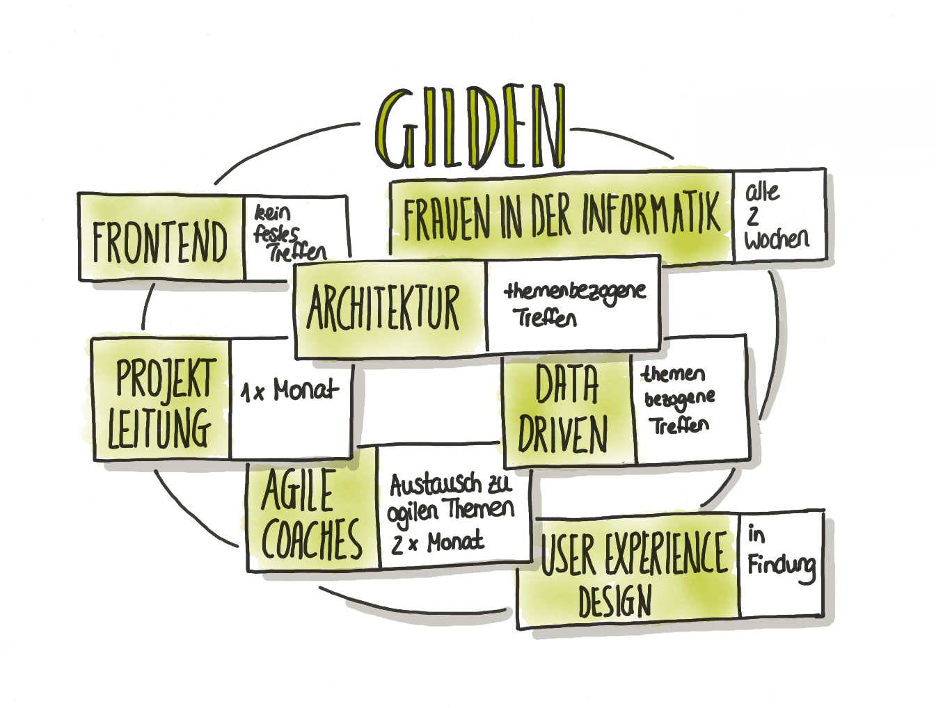 Die Gilde ist eine Gruppe, die sich mit einem fachlichen oder technischen Querschnittsthema beschäftigt. Aktuell gibt es bei uns folgende Gilden: