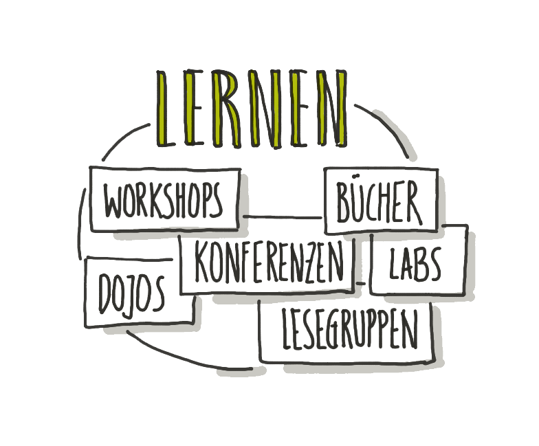 Immer wieder finden interne Workshops statt. Für alle neuen Mitarbeitenden veranstalten die Agilen Coaches den "Agile Werte "-Workshop. Auch der Einstieg in das Thema Data Science, ein Experiment zu Internetmaschinen und Kubernetes waren Workshop-Themen.