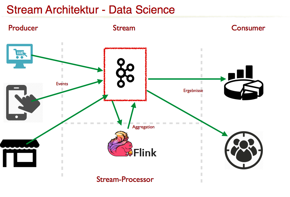Mit dem Aufkommen immer größerer Datenmengen stellt sich immer mehr die Frage der zeitnahen Verarbeitung dieser Daten für datengetriebene Anwendungen oder Business Intelligence Analysen. Die Verarbeitung von Events sollte so schnell wie möglich geschehen, am besten in Echtzeit. Dazu werden immer häufiger Daten-Streams verwendet.