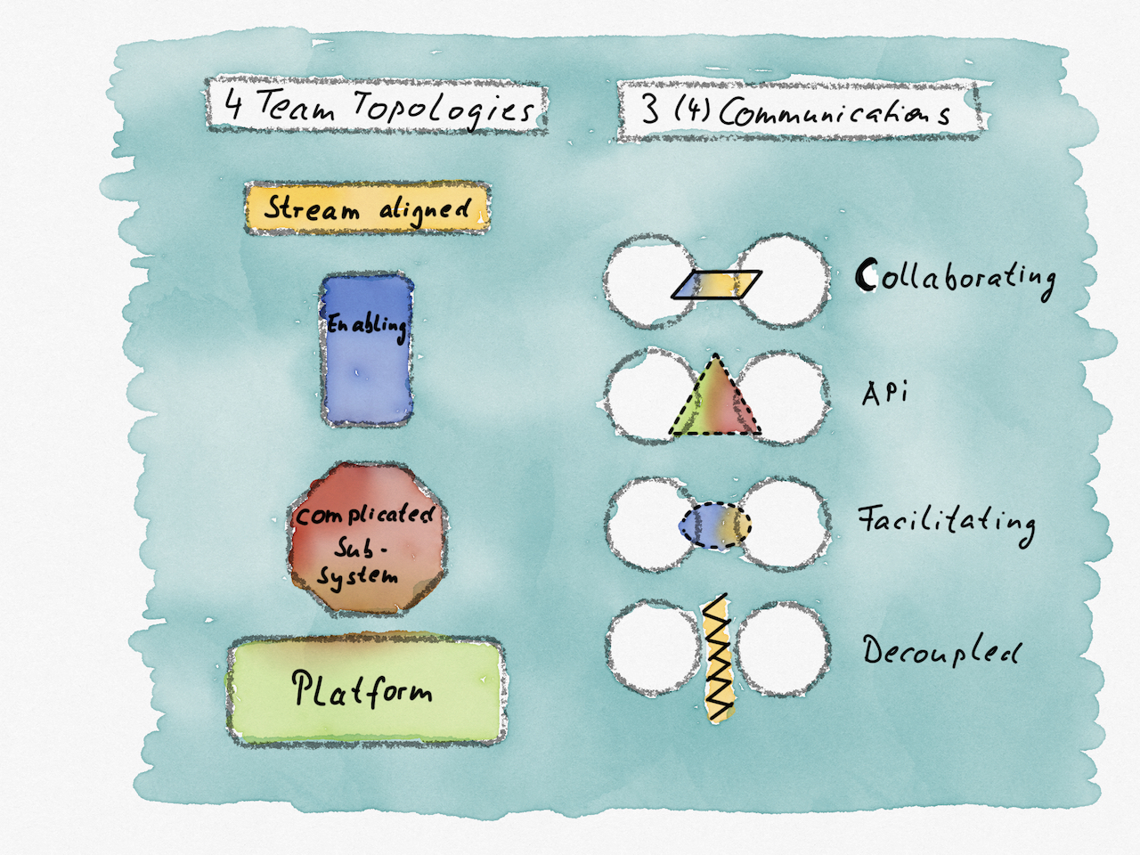 Team Topologies ist im Kern eine teamzentrierte Anwendung von Conways Law auf die Softwareentwicklung. Als Einstieg neben dem Buch Matthew Skelton and Manuel Pais (2019) "Team Topologies: Organizing Business and Technology Teams for Fast Flow", IT Revolution sei auf das Video youtu.be/haejb5rzKsM verwiesen.